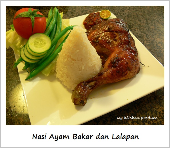 This is a standard grilled chicken that you could find mostly in Indonesian restaurants. The chicken is cooked for a very long time so that the flesh is really tender and almost melt in your mouth and the bone is quite soft. You could also deep fry this chicken instead of grilling them and you could literally eat the bone. It is usually served with nasi uduk, lalapan (steamed or raw vegetables) and sambal cobek or terasi (but mine is only served with steam rice).