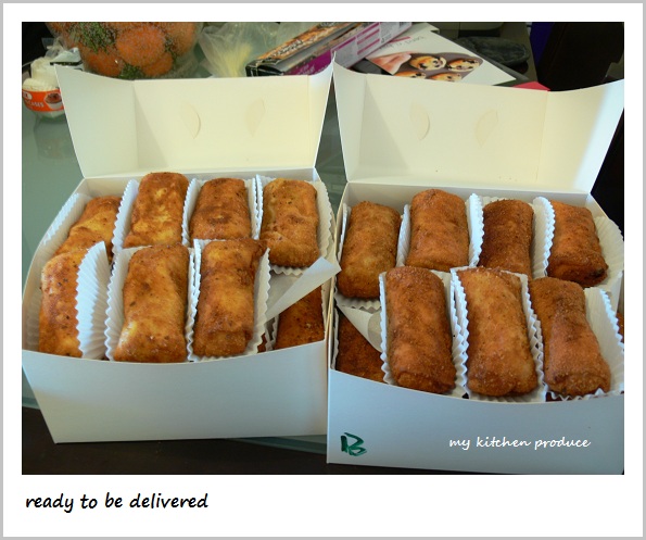 My orders were done, and now it is time to finished half of the filling left over. I had to whip the wrapped batter again and I ended up with another 50 risoles. Well, at least I didn’t go short on the orders and all the house members could have a taste of the risoles. Everybody is happy.
