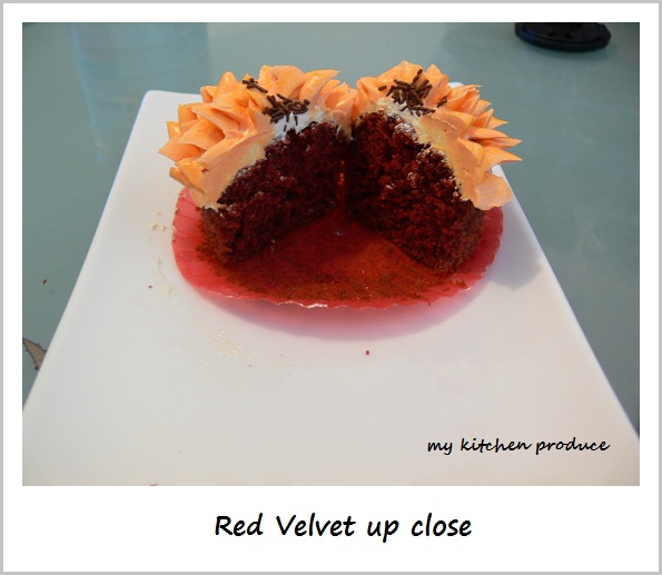 I have always wanted to make red velvet cupcakes. Almost every reviews on any version of rev velvet recipes on the web are really positive, and I felt like missing out on these amazing cupcakes. It must be really really good. I decided to make Ms. Stewart’s cupcakes. Well, I couldn’t take any chances and chose someone else recipes. If the cupcakes failed, I am doomed. I made the cupcakes in the middle of the night to be used the day after. And Ms. Stewart’s recipes never failed me.