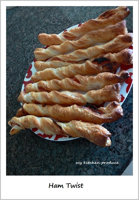- Fold the pastry in half to enclose the ham and twist them.